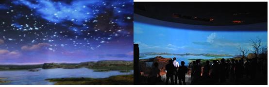 帶著對(duì)水洞溝的好奇,坐上大巴,很快見到了傳說(shuō)中的水洞溝,剛走進(jìn)大門,看到的是一片荒涼,心中不免有些失望。隨著導(dǎo)游的聲音,走進(jìn)了水洞溝遺址博物館實(shí)景體驗(yàn)區(qū),我的心情豁然開朗,從繁星點(diǎn)點(diǎn)的蒼穹、裊裊升起的炊煙、成群奔跑的犀牛、鴕鳥、羚羊,到水洞溝人打磨石器、分割獵物、制作鴕鳥蛋皮項(xiàng)鏈,到家園被毀、水洞溝人含淚離開,我們?cè)诙潭?0分鐘內(nèi)體驗(yàn)到“夢(mèng)回三萬(wàn)年”的情景。一切都是那么真實(shí),那么鮮活,仿佛遠(yuǎn)古的水洞溝先民就從我們身邊緩緩走過(guò)。